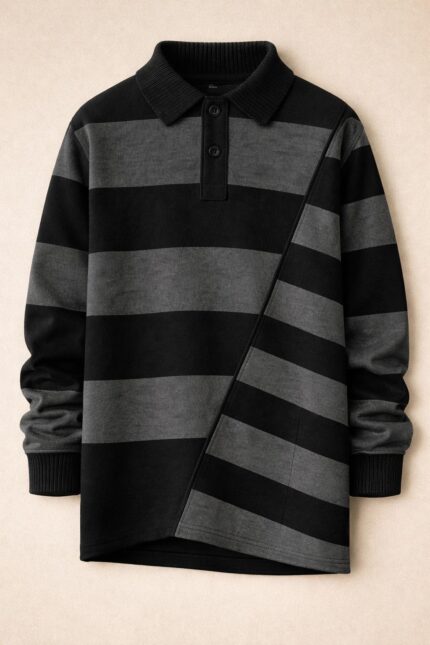 Rugby Sweatshirt – Organic Cotton French Terry Asymmetrical Stripe