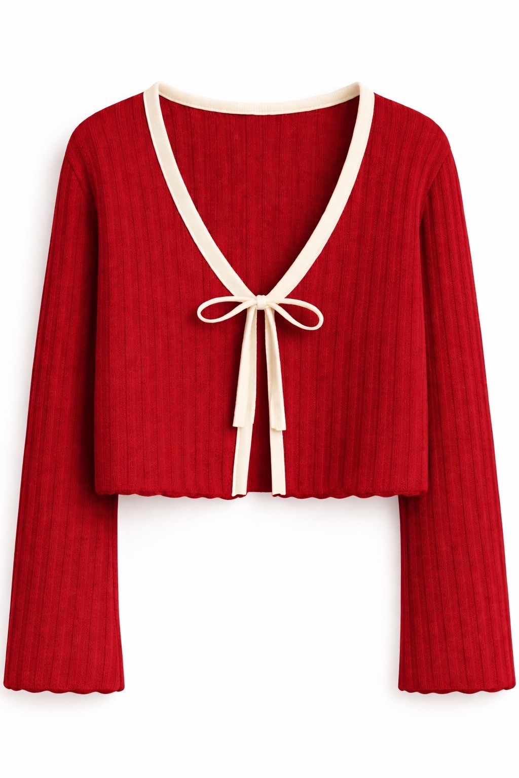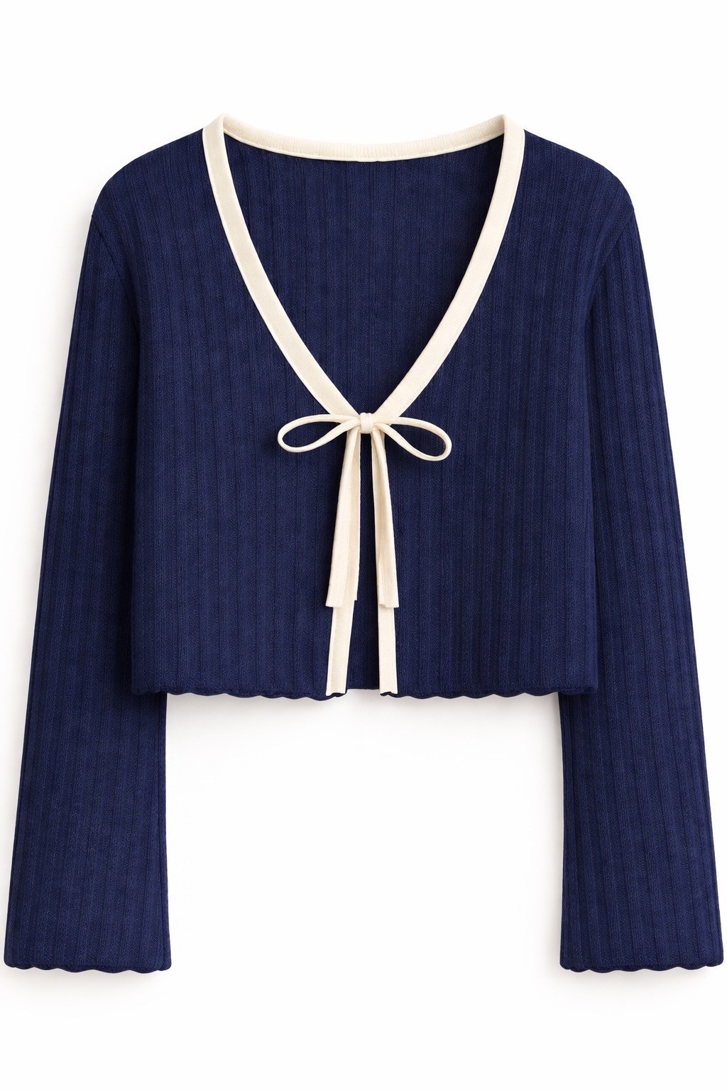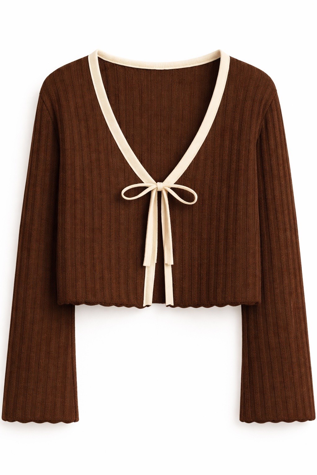 • Contrast cream rib binding – elegant color-block detail