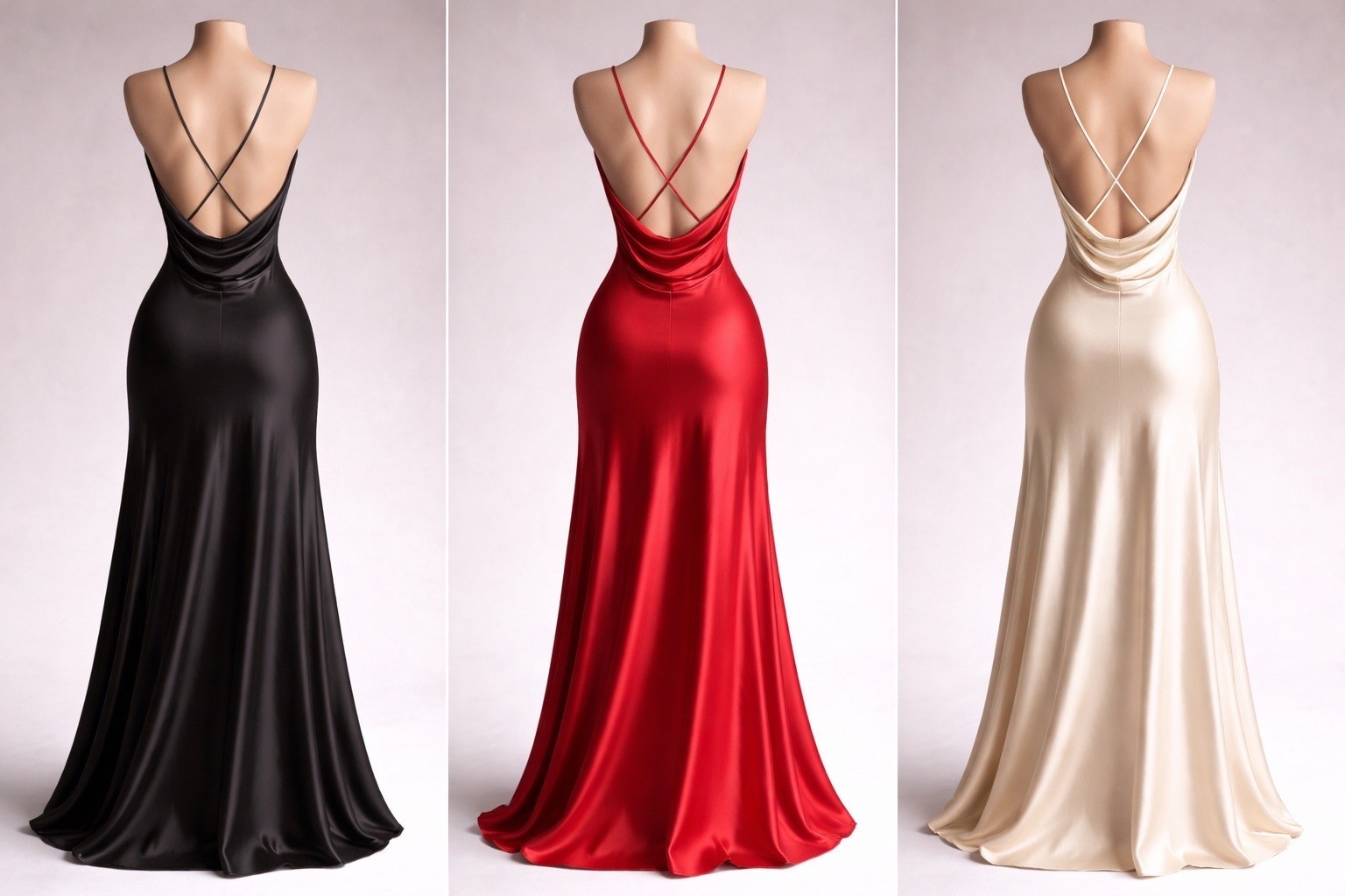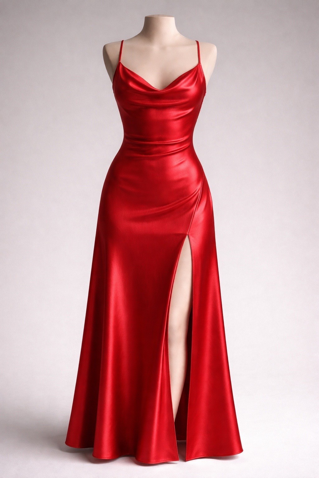 Premium – Italian Silk Satin Slip Dress with Cowl Neck